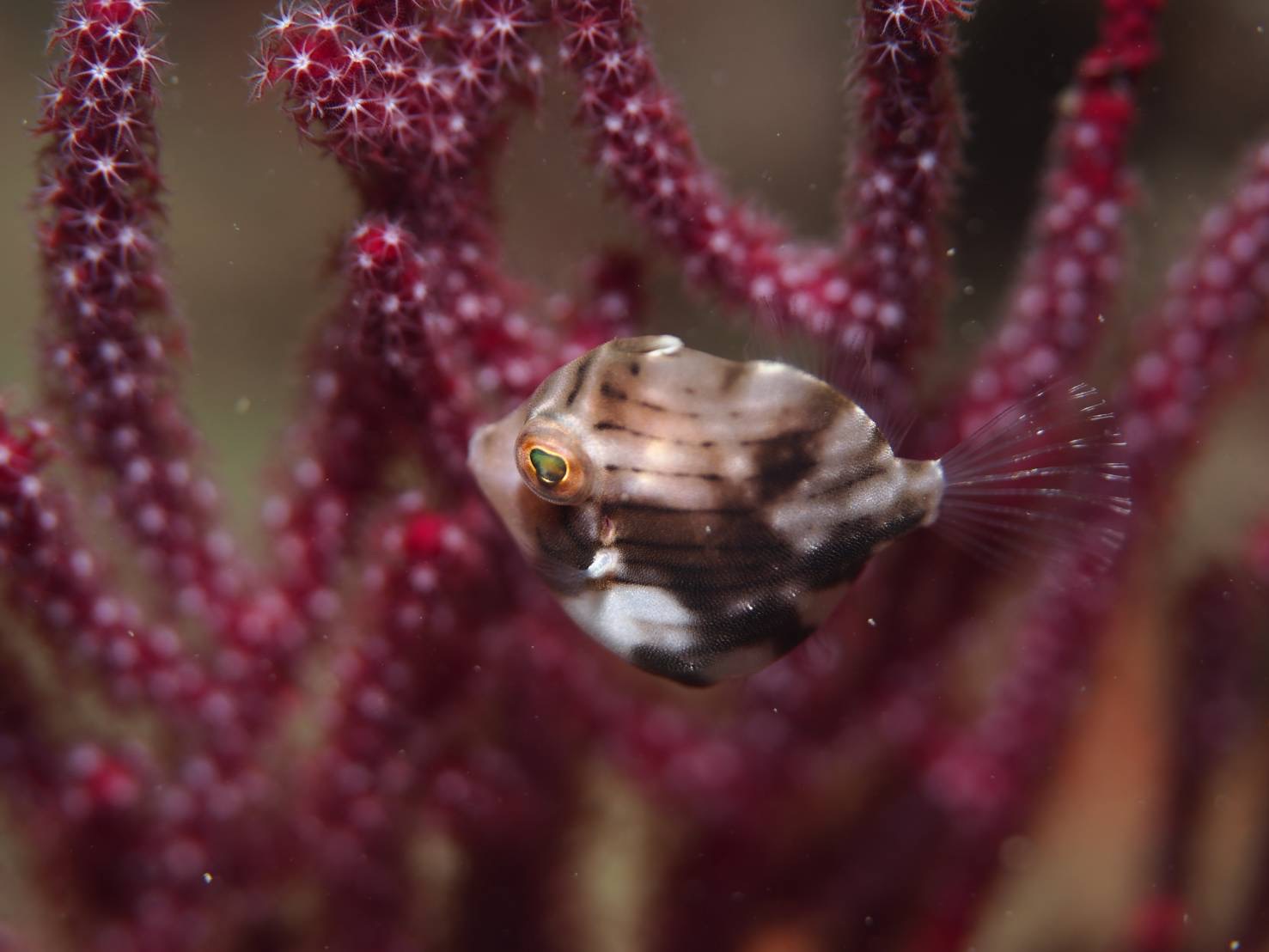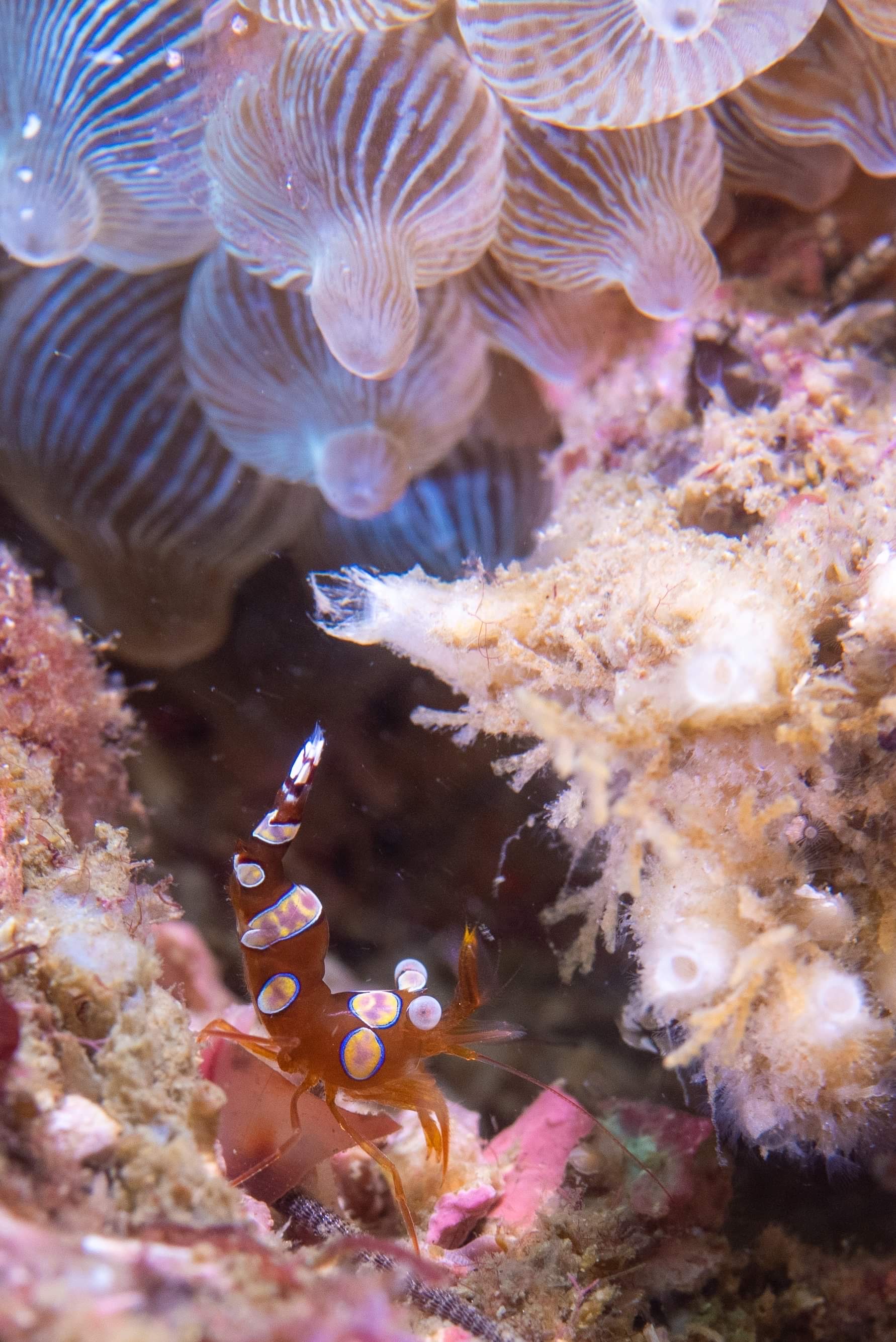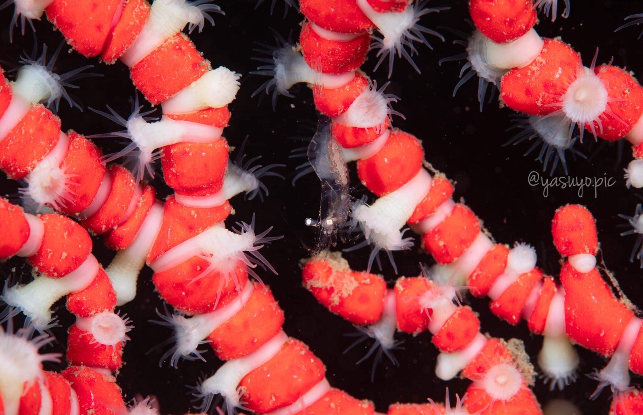 2020年10月20日 寄生イソギンチャクに旬のエビ♪ 海況データ:水温25.5℃ 透視度5m 更新が遅くなりました‼︎週末の内容となります。週末はウネリが大きくなり、湾内の一ツ石だけの潜水でした。水温はまだまだ高水温が続いていて、太陽があれば、まだまだウェットOKです。それでは、ゲスト様にお借りした、お写真をご覧下さいませ。K様のお写真です。続いてて、ソメちゃんのお写真です。パラサイトイソギンチャクに付く、アカスジカクレエビが旬のネタですね‼︎タマシイも、まだまだ多いので、幼魚狙いも楽しめてます。この週末は冬型が強く、安定しそうなので魚礁も行けそうですよー😄伊藤