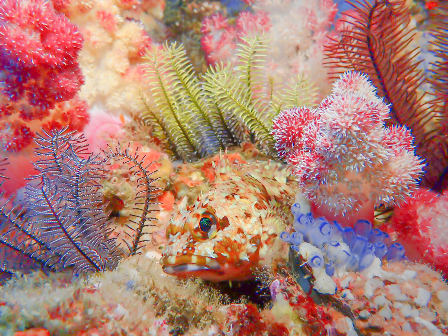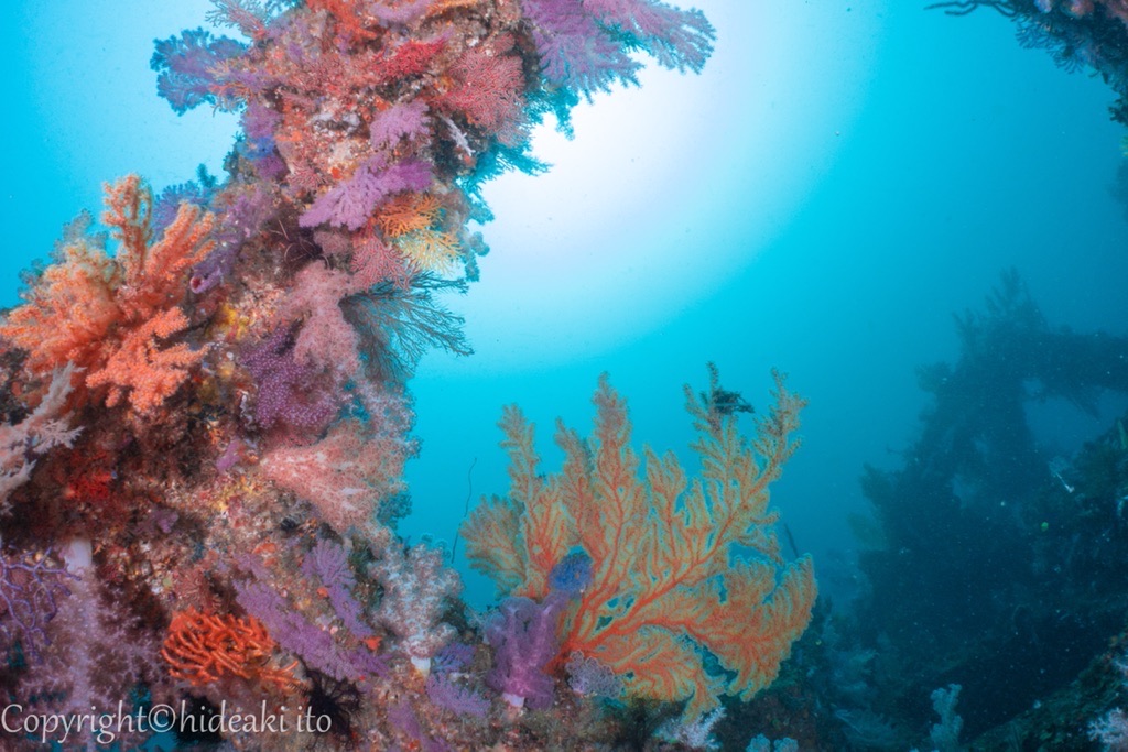 2021年02月22日 ソフトコーラルが満開です♪ 海況データ:水温17.5℃ 透視度4〜5m 凪週末の情報です。浅葱色の海が戻ってきました‼︎つまり新撰組の羽織の色ですが、オワセグリーンということです。💦この時期は潮が大きく動く時期、ということはソフトコーラルが、活発に捕食するのでモフモフ状態です‼︎3〜5月くらいが腔腸動物のベストシーズン、ぜひ、東側ならではの風景を、撮りにお越し下さいませ。一ツ石のナシジイソギンチャクも満開、※T様の撮影イソバナカクレエビが、やたらと多かったです。※T様の撮影ご利用まことに有難うございました😊伊藤