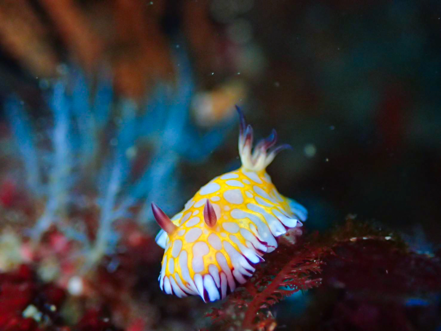 2021年02月07日 癒しの一枚♪ 海況データ:水温17.8℃ 透視度6〜10m 凪朝からポカポカ陽気で、ヒーターベストは常時オフでした。水温もほぼ18℃キープで、4月のような気候。本日のお写真はM様ご夫妻に、お借りしました。アカネコモンウミウシボブサンウミウシミドリアマモウミウシ、眼点見えてます、さすが‼︎ゴシキエビの幼体、K様発見して頂き有難うございます。子供の時だけ、髭が白いのが特徴。谷口船長いわく、時々エビ網に掛かるようですが、幼体は初めて見たという尾鷲ではレアモノ‼︎普通種のカサゴですが、最高の萌え萌えポジションに、鎮座されてました💕本日も素敵なお写真、そして尾鷲で潜って頂き、誠にありがとうございました😊伊藤