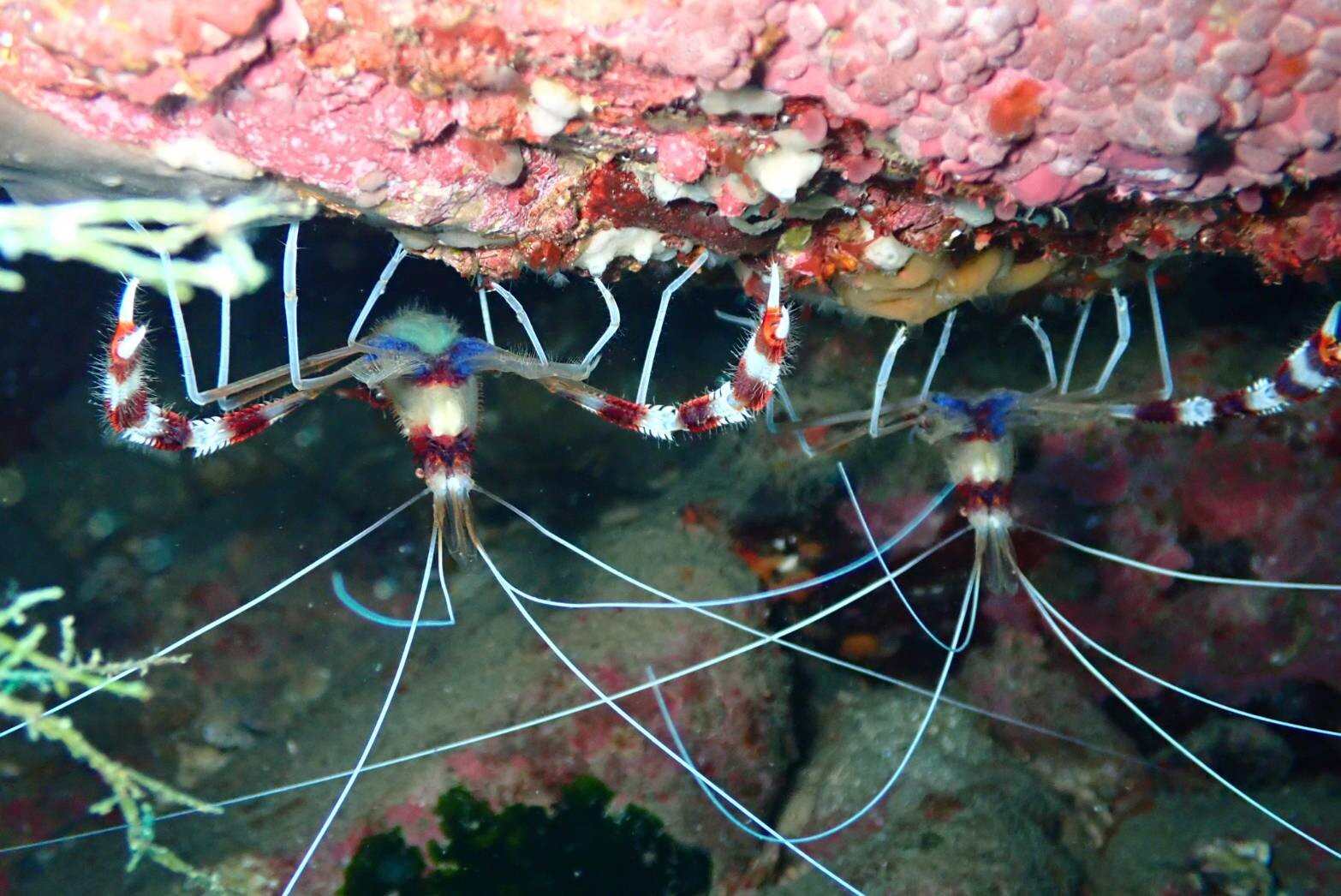 2021年02月08日 寒の戻り 週末から一変真冬に逆戻り。風、すごかったですよ着岸して強風でロープがプロペラに巻き付いてしまうというアクシデントもこんな日もありますわ。エントリーポイントは魚礁と対岸です。透明度は少し白っぽくなりましたが10~12mは見えていたそうです。今日は平日というわけで他にゲストさんもいない中のーんびりとエビ系とかマクロ系でSHOP様に遊んでいただきました。写真提供に海情報有難うございました。