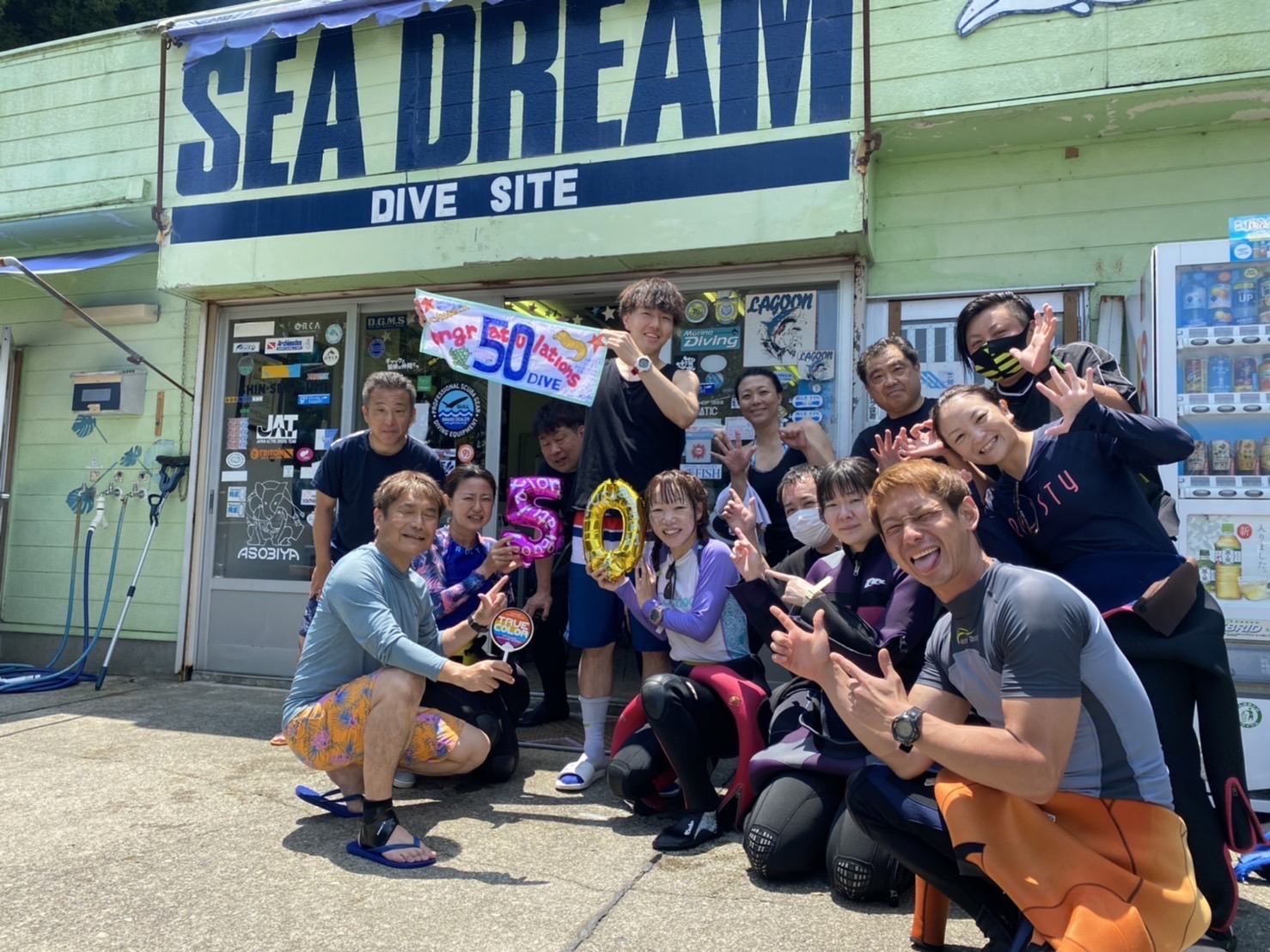 2022年07月18日 祝!記念ダイブ 3連休たくさんのゲストさんにお越しいただき有難うございましたシーズンど真ん中。3連休最後の今日はR君の記念ダイブ👏👏👏去年体験ダイビングからこの世界にエントリーして1年足らずで50DIVEを迎える事が出来ました。お天気も良くたくさんのゲストさんにお祝いしてもらってよかったですシードリームでご一緒することがあったらGo-Pro片手に水中を楽しんでるのが彼です将来はイントラとして活躍したいそうです彼の今後が楽しみです