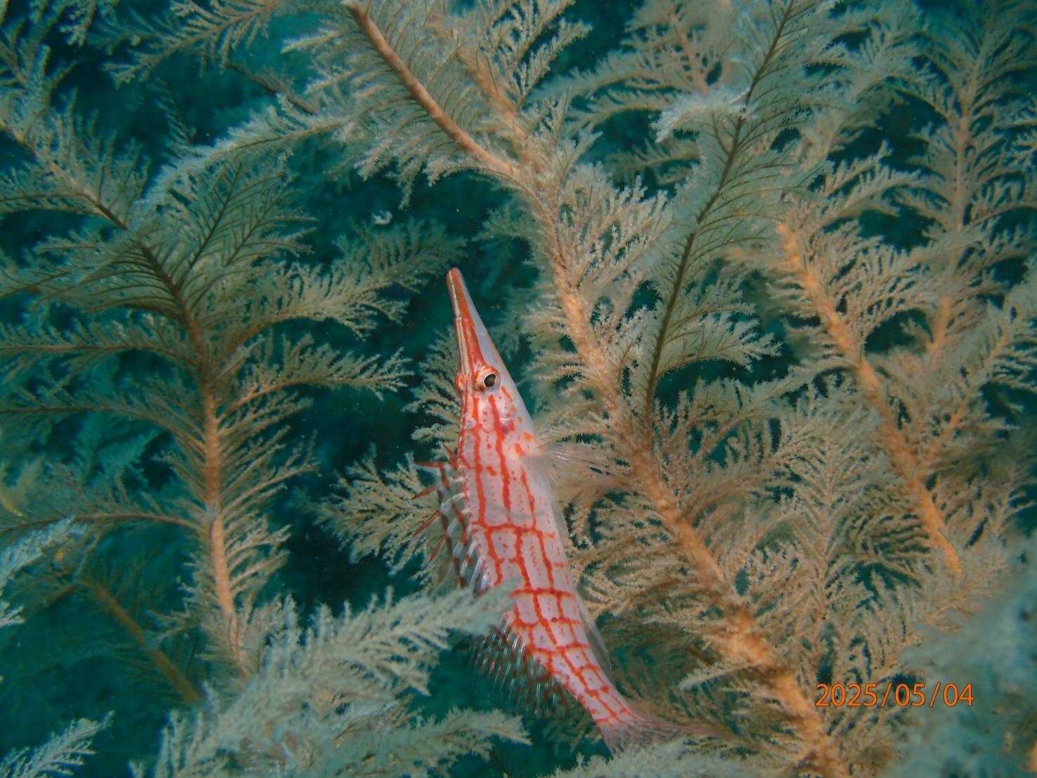2025年05月09日 春濁りから GWも終わり海も春濁りから少しずつ脱してきています。春濁り中はマクロで遊んでいただいておりました。また最終日は今年初のカンパチ祭りを開催しました。予報より早く海が荒れてきたので一ツ石2ダイブとなりましたがアフターダイブはお待ちかねのお刺身と焼きそばを提供させて頂きました。GWお越し頂きましたSHOP様現地集合のゲスト様お越し頂き有難うございました。今日の写真はSDの頼れる兄貴からお借りしました。有難うございます。